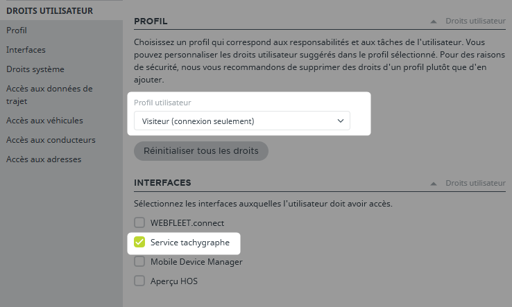 Les droits utilisateurs nécessaires au bon fonctionnement sont :